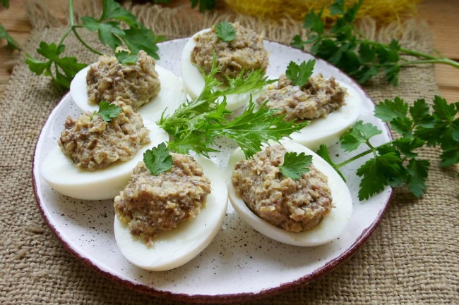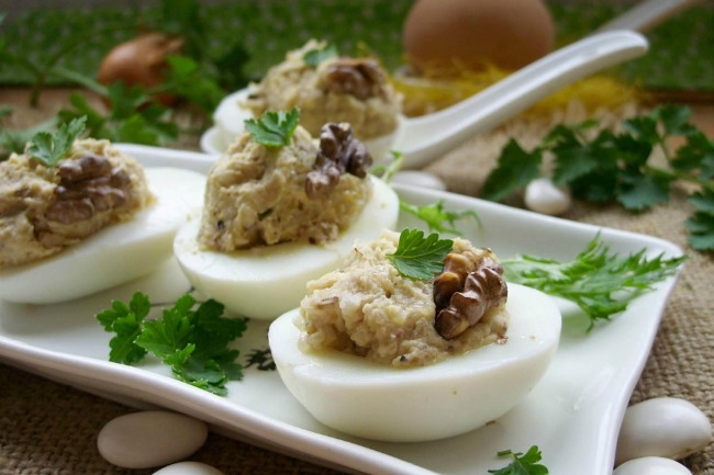 7. Фаршировані яйця квасоляним паштетом і волоськими горіхами