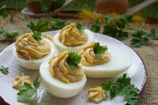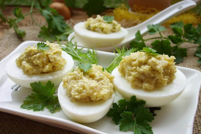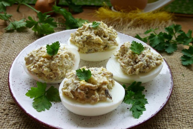 Фаршировані яйця – відмінне рішення для святкового столу. Різноманітність всіляких начинок обмежується лише фантазією господині, і, якщо не полінуватися, а зробити хоча б 5-7 видів, у гостей просто очі порозбігаються. Головне тут, зварити яйця круто, це не менше 10 хвилин після закипання, і відразу ж помістити в холодну, а найкраще, крижану, воду. Потім дати повністю охолонути. Завдяки цьому шкаралупа добре відійде від білка і яйця будуть виглядати презентабельно. Обов’язково спробуйте здивувати всіх цією простою і смачною закускою.
